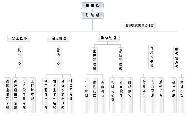 總經(jīng)理室:由總經(jīng)理、管理者代表、副總經(jīng)理、總工程師等高層管理人員組成,負(fù)責(zé)公司經(jīng)營管理決策。